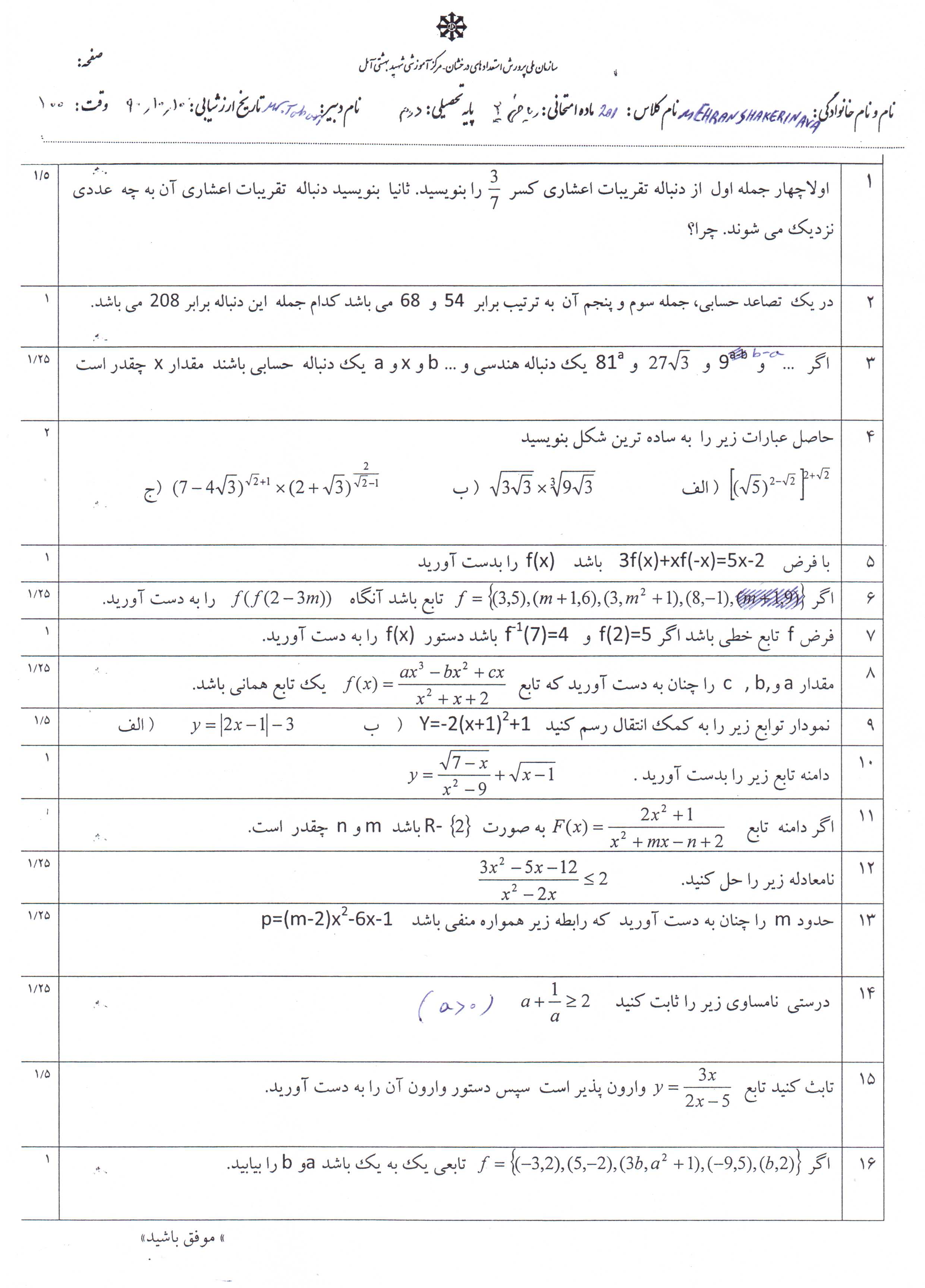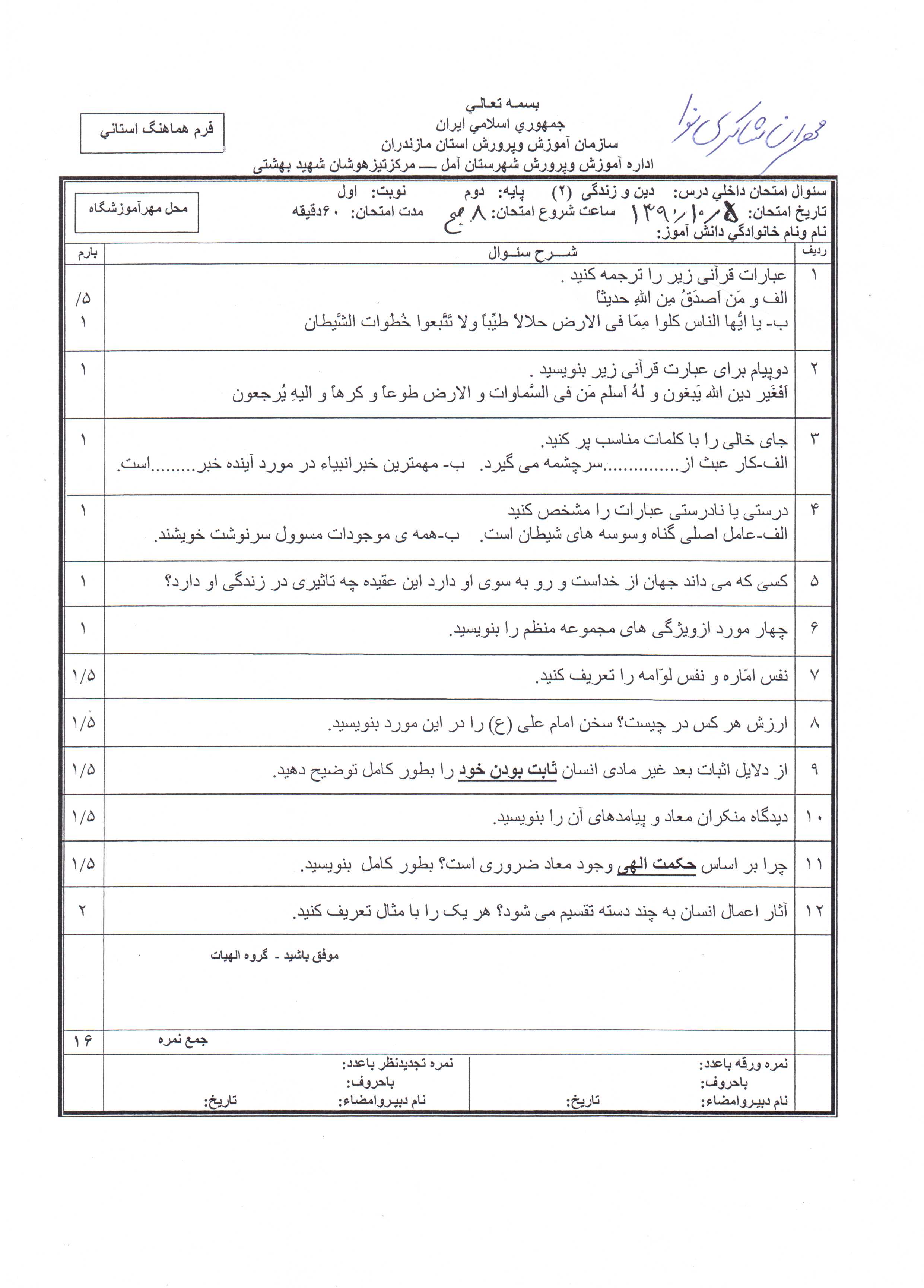 (امتحانهای آماده شده تا کنون: 10)