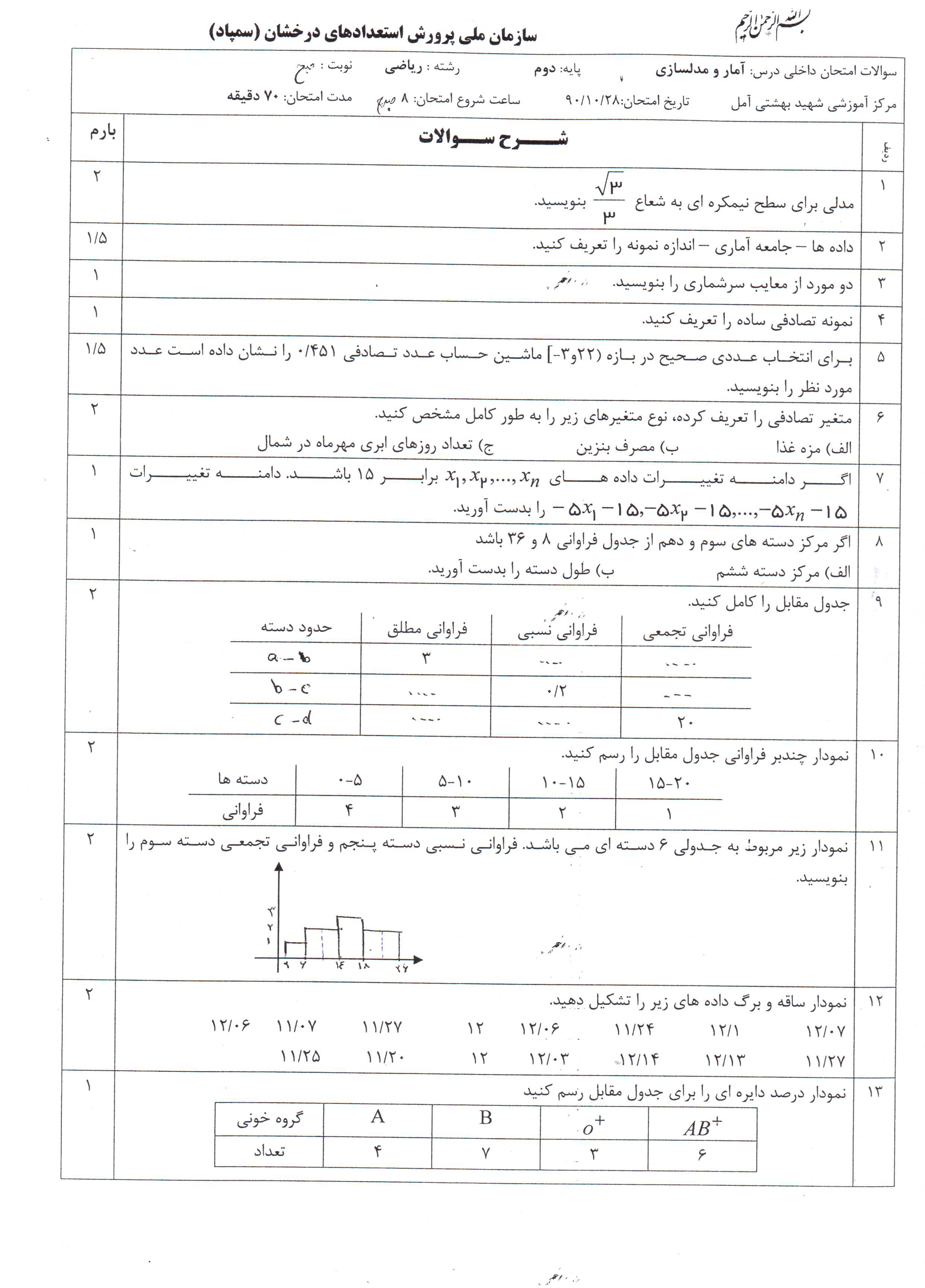 سؤالات مربوط به سال 90: